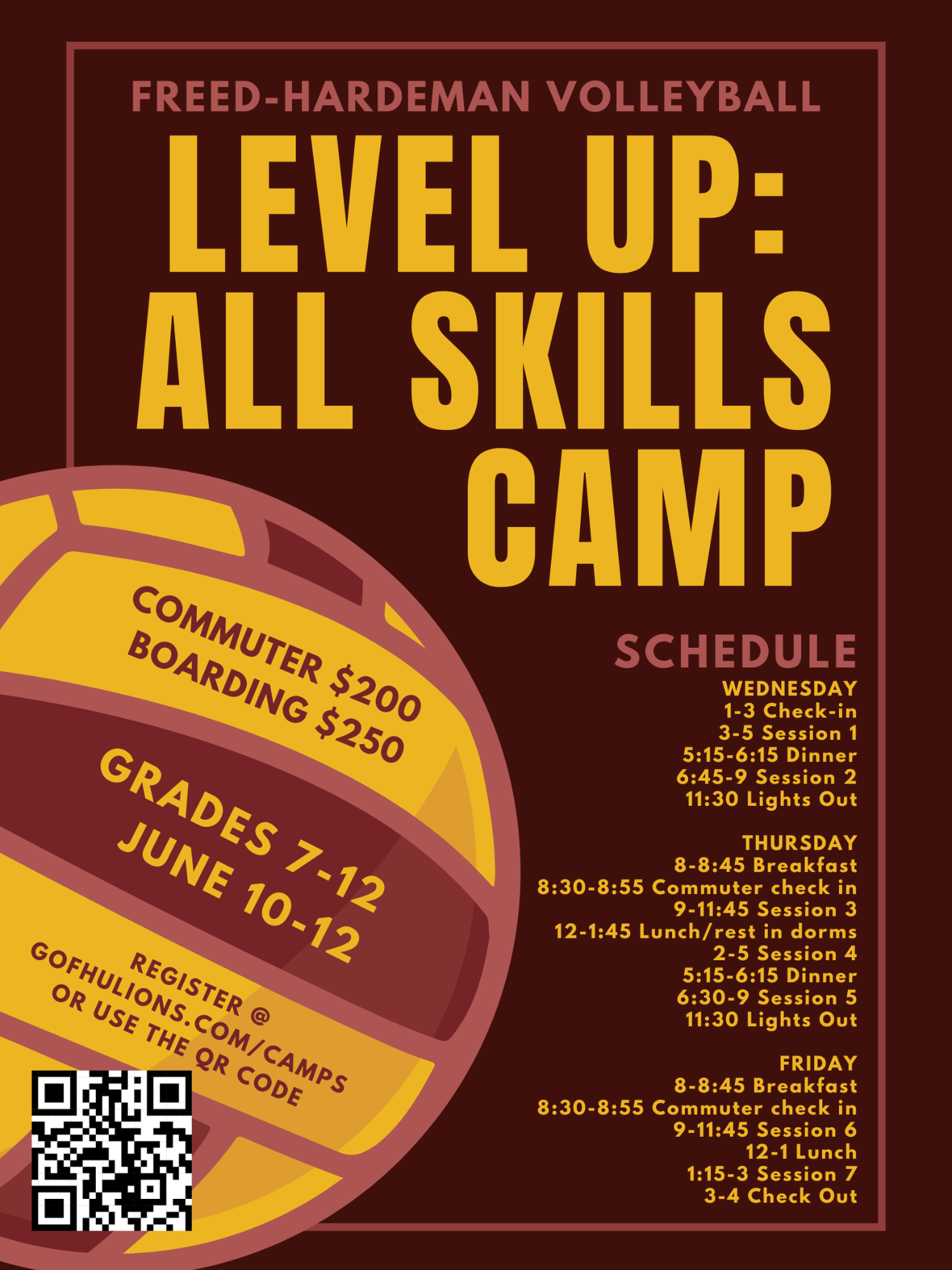 June 10-12 Level Up Volleyball All Skills Camp 7th-12 grades $250 (Boarding)